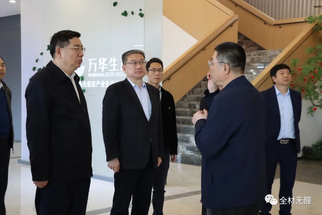 On the afternoon of March 30, 2023, Wang Yuzhi, Director of the Shandong Provincial Department of Housing and Urban-Rural Development,Yusheng Tao, Member of the Standing Committee of Yantai Municipal Party Committee and Deputy Mayor,Shandong Provincial Department of Housing and Urban-Rural DevelopmentDirector of Energy Conservation and Technology Division Shi Yongpeng, Director of Real Estate Division Lou Baolai, Deputy Director of the Office Gao Jian,Secretary General of the Residential Technology Committee of the China Real Estate Association Gao Xuefeng, Chairman of the ISO Prefabricated Building Subcommittee of the Ministry of Housing and Urban-Rural Development Yin Boyueand other delegates visited the Yantai headquarters of Wanhua Ecological Group to investigate the development and products of green building materials, green home decoration, and green construction.Guo Xingtian, Deputy to the 14th National People's Congress and Chairman of Wanhua Hexiang Ecological Technology Co., Ltd., received the delegation and introduced the development history of Wanhua Ecological Group, from a drop of glue, to two boards, and then to a whole home. Guo Xingtian stated that this year marks the 18th year since Wanhua Ecological Group started its green building materials business. The group's Wanhua Hexiang board uses agricultural and forestry residues and polyurethane adhesives as raw materials for board production, not only achieving formaldehyde-free, benzene-free, and low VOC artificial boards, but also finding a green and sustainable development path for the home furnishing industry. At the same time, Wanhua Ecological Group has also completed the detoxification transformation of indoor glue powder auxiliary products, truly realizing "Under the roof, there should be no formaldehyde."In 2015, Guo Xingtian also proposed the concept of industrialized home decoration. Focusing on the needs of a home, Wanhua Ecological Group developed a system of ten green industrialized customized home decoration products. Through factory prefabrication and rapid on-site assembly, the group meets consumers' personalized home decoration needs. Unlike traditional home decoration, this prefabricated interior product system offers multiple advantages such as insulation, soundproofing, and elderly-friendliness. The decoration process is dust-free and noise-reducing, saving 73% of materials. Guo Xingtian stated that Wanhua Ecological Group, from customized furniture to customized home decoration, provides a green and sustainable solution for the beautiful home life of the Chinese people. Wang Yuzhi, Director of the Shandong Provincial Department of Housing and Urban-Rural Development, pointed out that urban and rural construction shoulders an important mission in implementing the major strategies of carbon peaking and carbon neutrality and promoting the construction of a green, low-carbon, and high-quality development pilot zone. Wang Yuzhi learned in detail about the development of Wanhua Ecological Group's green home furnishing industry and fully affirmed the outstanding achievements made by Wanhua Ecological Group in green building materials, green home decoration, and green construction in recent years. He also encouraged the group to firmly establish the awareness of independent technological innovation, strengthen industry technological innovation, highlight the leading role of enterprises in innovation, strengthen the promotion and application of advanced and applicable technologies, and empower the high-quality development of housing and urban-rural construction with technological progress.
